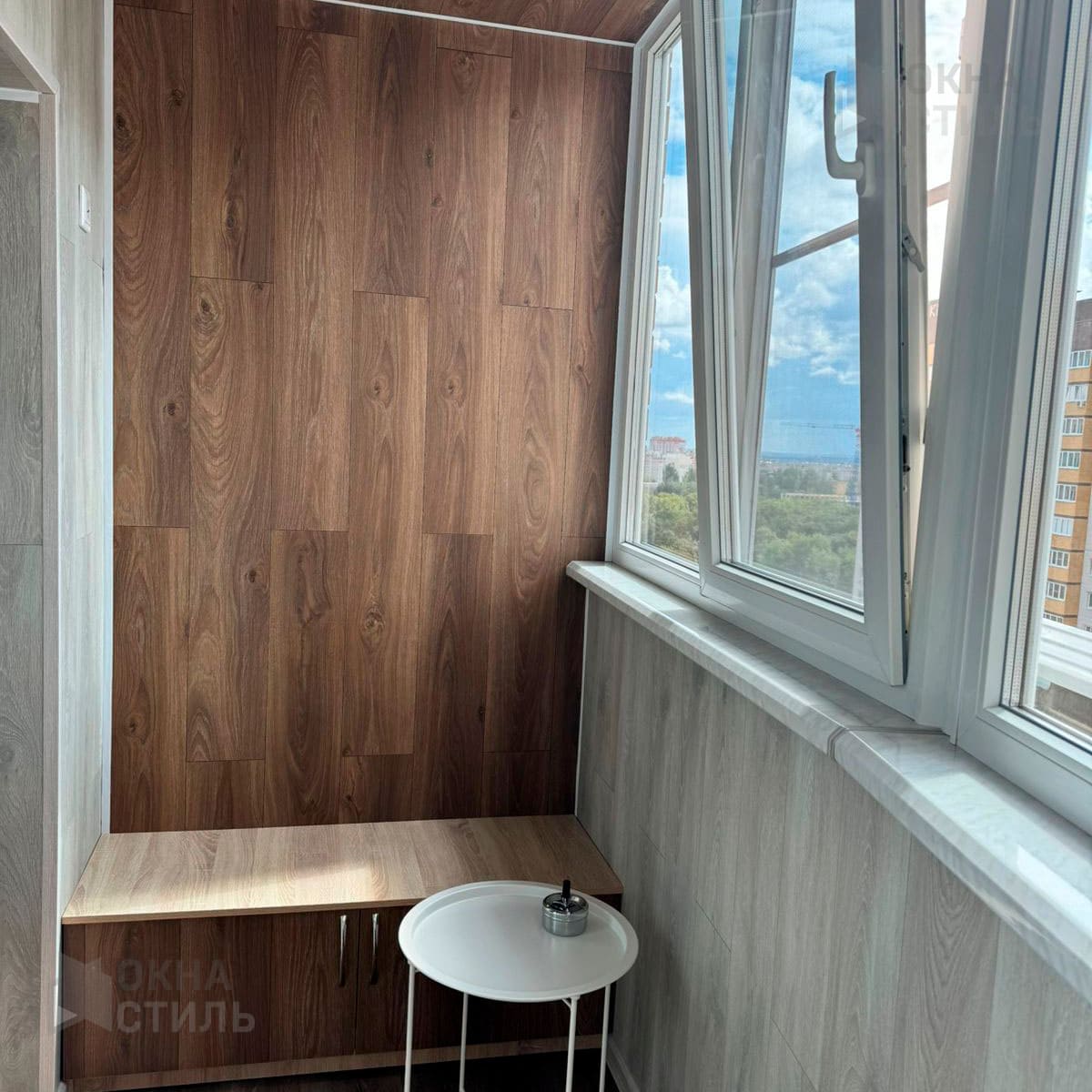 Что сделали: установили балконную раму, выполнили работы по комплексной отделки с утеплением, установили подоконники Данке